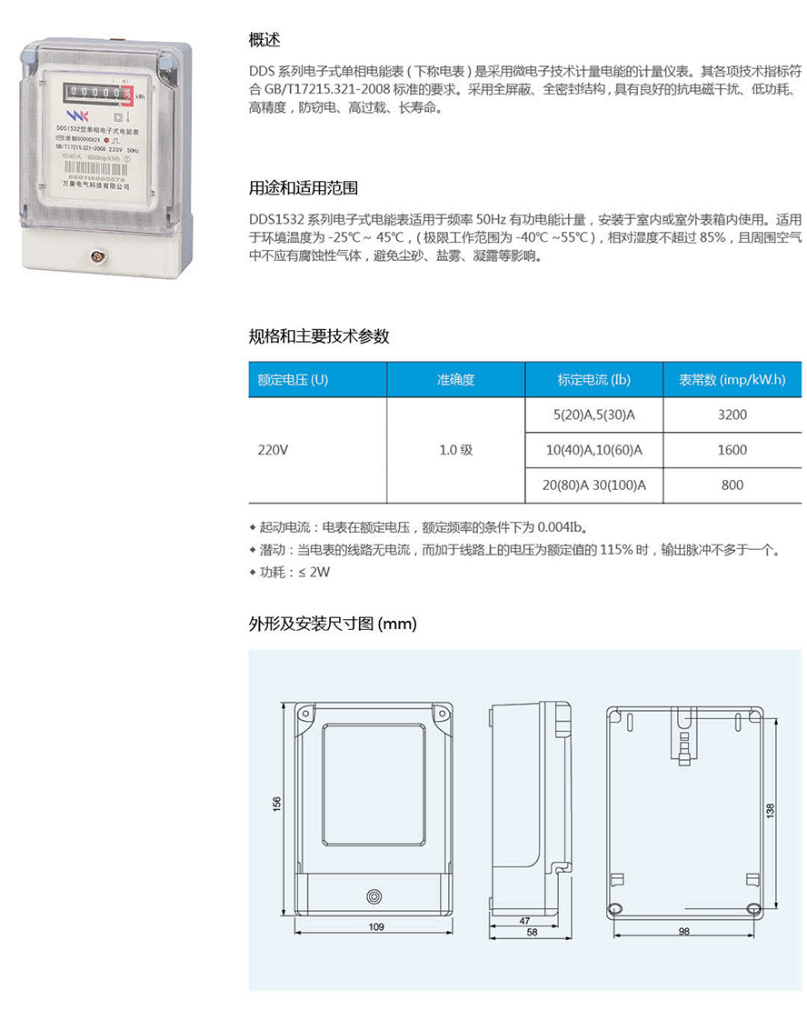 DDS1532单相电子式电能表
