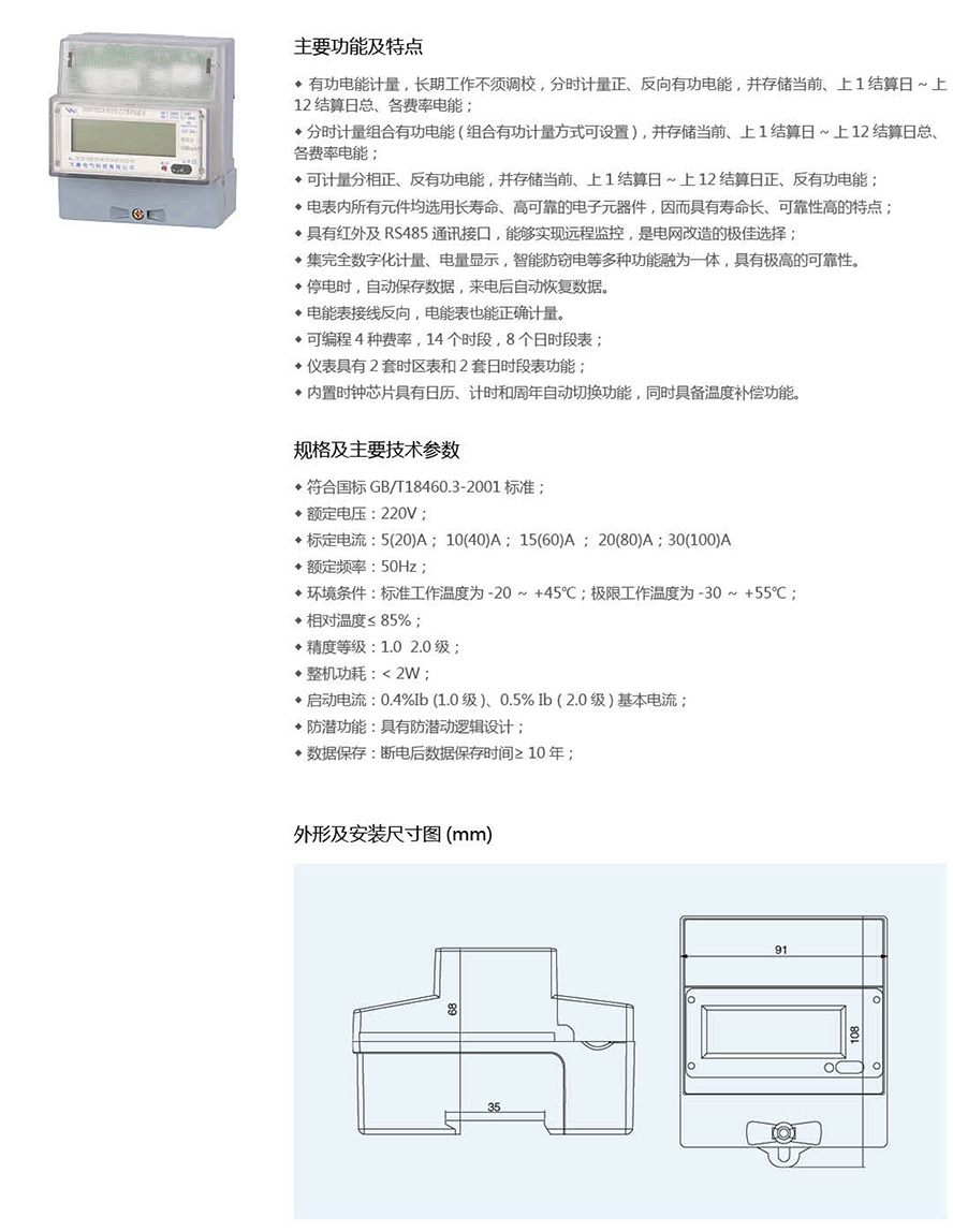 DTSF1532-Y三相四线电子式多费率预付费电能表(导轨)